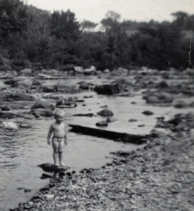 In order to answer that question we’ll have to go back a little before Sub Sea Research, or even Silver Bars, began. My dad was born in a one-room house in Cherryfield, ME in the 1950s. He grew up poor, and was the third of nine children born to his family. As a child, he had a lot of freedom to roam and explore outside. He spent the first several years of his life in the Portland area of Maine. It was here that he began adventuring, by exploring the woods around his house or walking through town with his siblings. See photo at left – he always loved water, from a young age. My dad often ended up in trouble, once with his mom for trading his bicycle for a box full of rattlesnakes (she made him trade them back!). Because of his penchant for exploration, he would sometimes end up getting hurt. My dad has more strange injury stories than anyone I’ve ever met! From falling off a small cliff and ripping his lip open (which is actually why he always wears a mustache), to blowing his hand up with a small bomb he found while outside playing, his interest in adventuring was never diminished despite these setbacks. Though he likely has more scars than most, all of these stories have shaped him into someone with a survivalist mentality. Having so many brothers and sisters, he was often left to his own devices or to take care of his younger siblings. His independence was fortified when he was still a child himself.