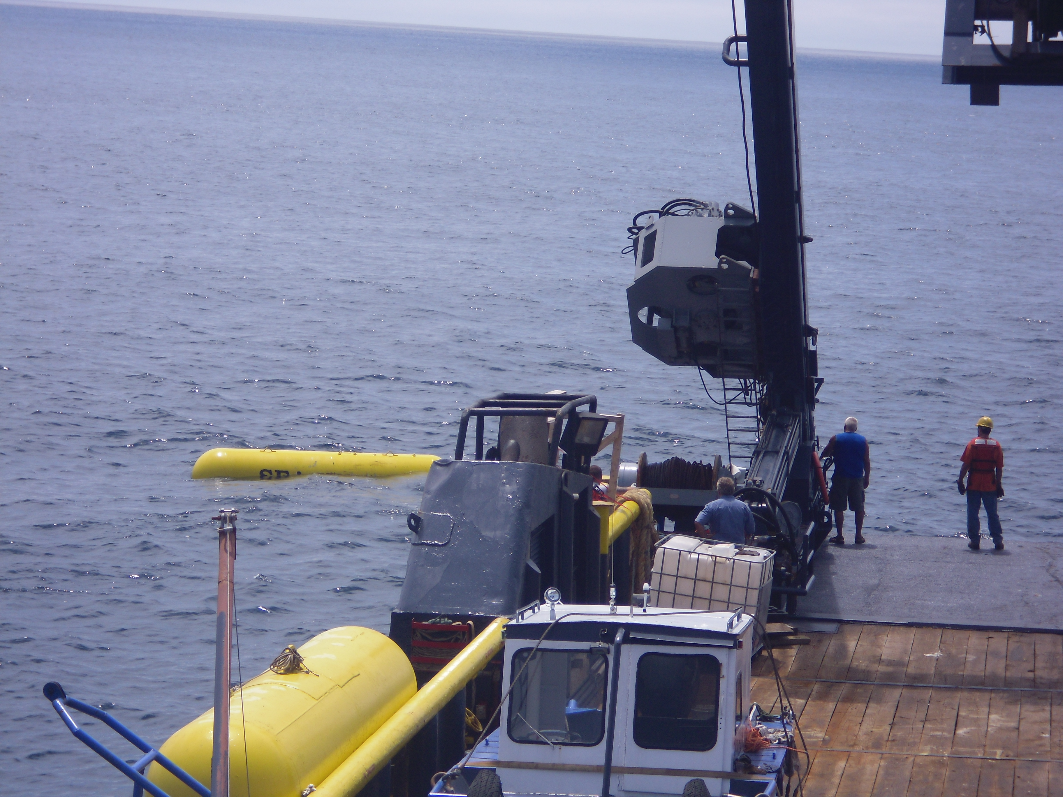 Our first trip to the site was a success, with all four anchors set in place. (I previously mentioned their weight as being 2000lb each, but in reality they were 10,000lbs each). The four buoys (made from 1000 gallon propane tanks) were also in place. We had painted them bright yellow and stenciled the M/V Sea Hunter across the front of each one. It was quite the sight to see them bobbing up and down with each swell. (I would eventually call them,” party barges” for the seagulls, as it was common to see 10 or so gulls resting on top of them). The crew worked long and hard into the night until all work was completed. Greg was quite happy with this and it gave everyone a sense of accomplishment. The only thing wrong, or should I say missing, was Dave. A few weeks prior to our first trip, he took a fall off the gangway and broke his ankle. A ship was no place to be with a broken ankle, so he was at home recuperating, but I know his thoughts were always with us. The two cameramen, Martin and Toryn, filmed the entire process. They would crouch behind something or stand on a rail to get the best footage. They became experts at staying out of the way. The security guards took their assignment seriously. They would walk around the ship, check all the nooks and crannies and peer through binoculars. They kept a close watch on all things happening on the ship. I, of course stayed busy in the galley preparing meals or making snacks, not to mention the endless containers of tea and lemonade. I, along with the crew felt this was a great start to our first season.