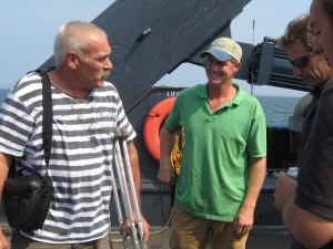 Another thing I learned right off the bat, was about watching guard. Though the ship was securely anchored, there were a million things that could go wrong and being 100 miles offshore, you don’t want anything going wrong. This meant that everyone had to be aware of what was going on around them at all times. Just watching from the pilot house wasn’t enough. The engine room was monitored throughout the day by someone walking through it and checking different valves. It wasn’t just checking things throughout the day, there was the night watch. It meant that each hour of the night required someone be awake and monitor the ships. Captain Gary would post the night watch list. It would list the names and times of the crew that had duty that particular night. It usually started around 10 pm and each watch would be 2-4 hours (depending on the number of crew). While on watch you stayed mostly in the pilot house and monitored the screens for any type of problem. One of the screens showed the location of the ship with a big circle around it. It was extremely important to keep an eye on this. If the ship wandered outside the circle it was possible we slipped off anchor. In that case you would wake the captain. Each hour or so, you would walk around the ship and check for something out of the ordinary. You would finish with a walk through the engine room. Since the Son Worshipper was hipped up to us, whoever was on guard would check that ship out also. You would then record the date and time and what you observed in the ships log. When your shift ended, it was your responsibility to wake the next person on guard up, and be sure they were fully awake before you headed to bed. Then it was sweet sleep before you woke and started a new day in the life of a treasure hunter.