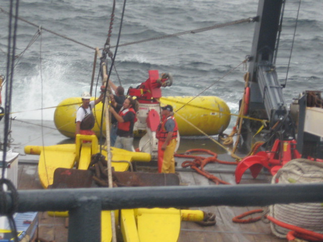 I awoke early to cook a hearty breakfast as I knew it was going to be another long and tough day for the crew. One by one they awoke and consumed breakfast and endless cups of coffee. After a brief meeting everyone got back to work. Greg and Gary went to the pilot house as Gary had to maneuver the ship to get it into position to allow the grapple to pick up the anchor. Brian headed to one of the connex boxes on deck that housed the controls for the A-frame and grapple. The rest of the crew, geared with hard hats and life jackets headed to the stern of the ship. With radios in hand they began their day . Radios were crucial while doing this kind of work. What the crew could clearly see on the stern, Gary and Brian couldn’t, so Kevin would inform them via radio. Occasionally, Kevin (the deck boss) would come up to the pilot house and discuss with Gary and Greg what was and wasn’t working. They would ultimately come up with an alternative solution.