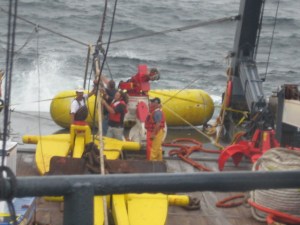 Our first order of business was to retrieve a lost buoy and anchor. They were needed, not to mention expensive. At the site we hooked up to one of the remaining buoys while the Son Worshipper scanned the area. With good fortune both the anchor and buoy were located. The crew aboard the Sea Hunter was now ready to go to work. For those who have never worked aboard a ship, it’s difficult to explain how tough it can be. Even the simplest tasks take a bit longer, not to mention you always have to be on your toes. With wire and cables running the entire length of the deck, it is very dangerous. One slip up could be deadly.