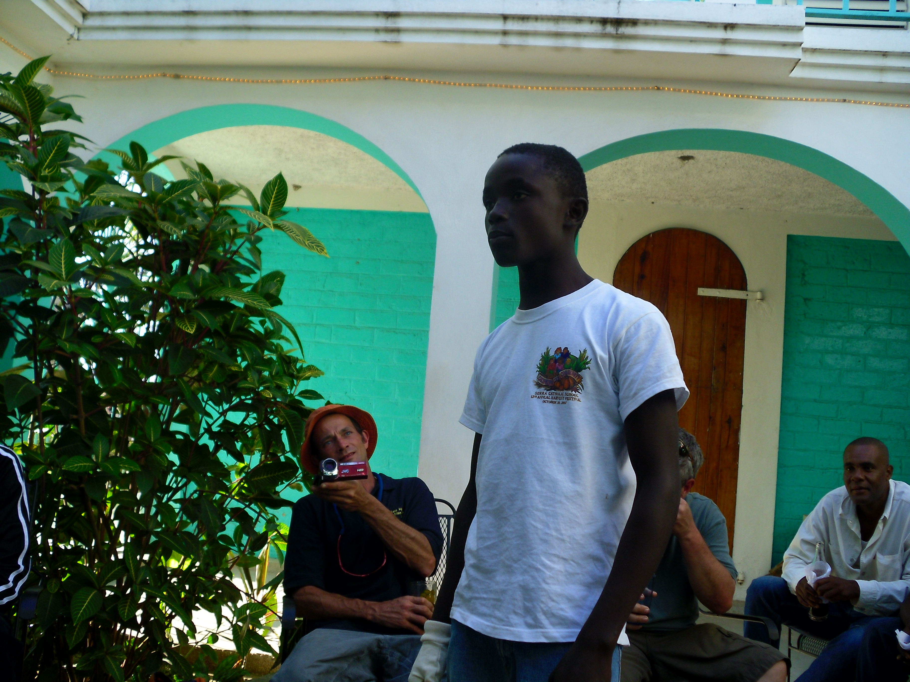 We had one more surprise waiting for us and it was one that touched us deeply. Another young man had asked Father Marc if he could sing for us. As we waited for him to appear, Father Marc explained that he was 14 years old and had been in the orphanage his entire life. His mother died giving birth to him and his father was unable to care for him, so he was left at the orphanage. At this time, out walked a handsome, well dressed young man. I noticed he had one white glove on his left hand. Father Marc explained later that he loved Michael Jackson and tried to emulate him. He shyly walked to the middle of the courtyard and just started singing. It was in Creole so we didn’t understand the words, but the sincere look on his face told the story that he was singing something close to his heart. I caught a few words that sounded like love and mama. We later learned that this was a song he wrote for his mother (that he never knew) telling her that he would always love and respect her. Our eyes filled with tears as we each hugged and thanked him for sharing his special song with us on that beautiful day.