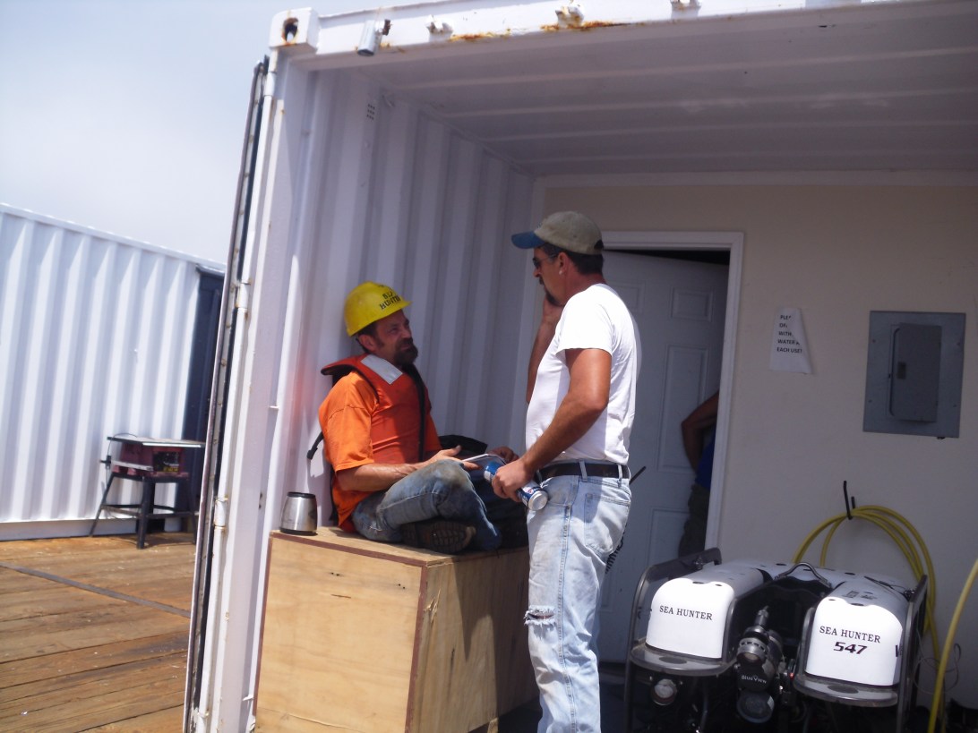 Kevin (ROV pilot) and Alex getting ready to fly the ROV